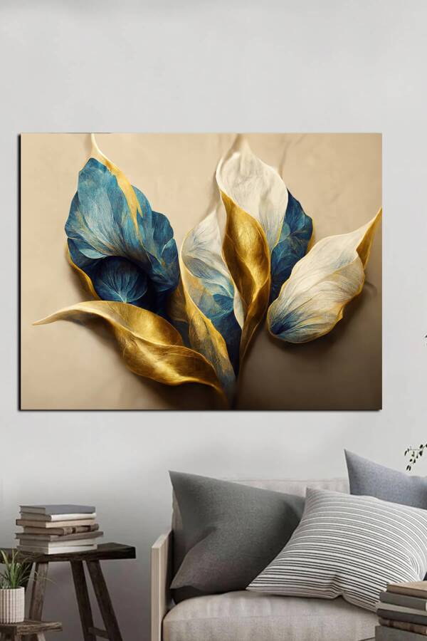 Altın Rengi Çiçek Yaprağı Kanvas Tablo