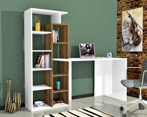 Extra Divar Rəfli Çalışma Masası və Kitab Rəfi Dəsti - Cəviz