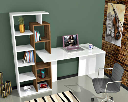 Extra Divar Rəfli Çalışma Masası və Kitab Rəfi Dəsti - Ağ