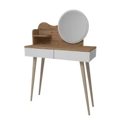Lizbon Güzgülü Makiyaj Masası - Cəviz/Krem