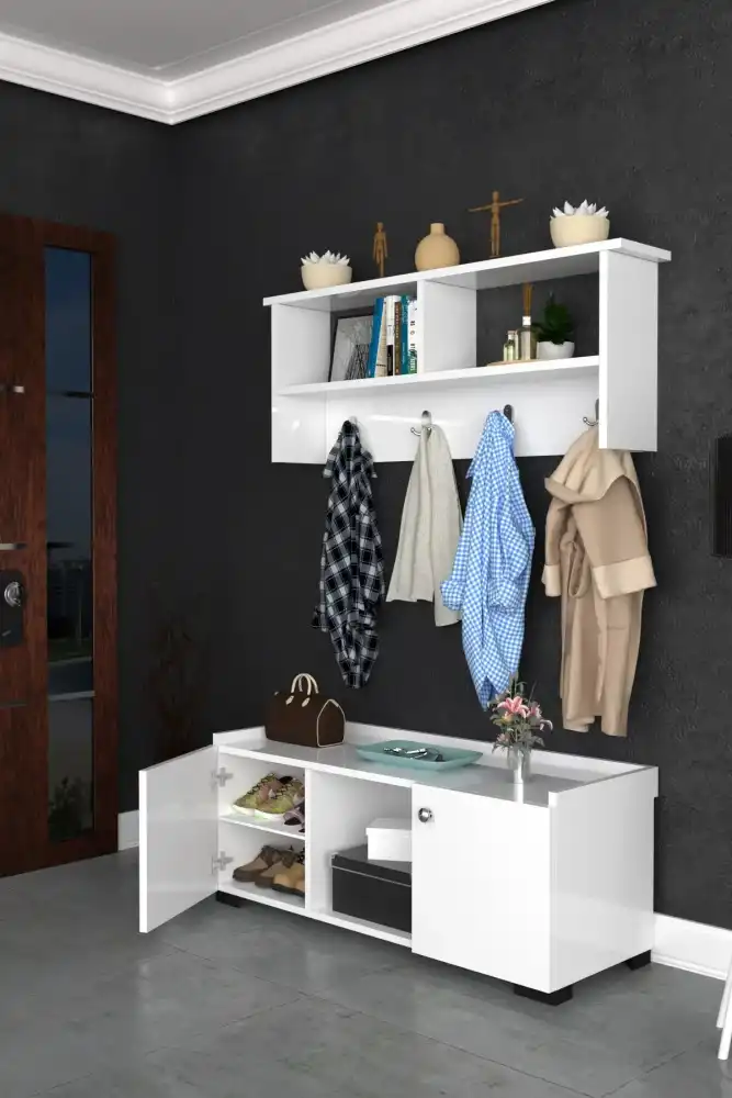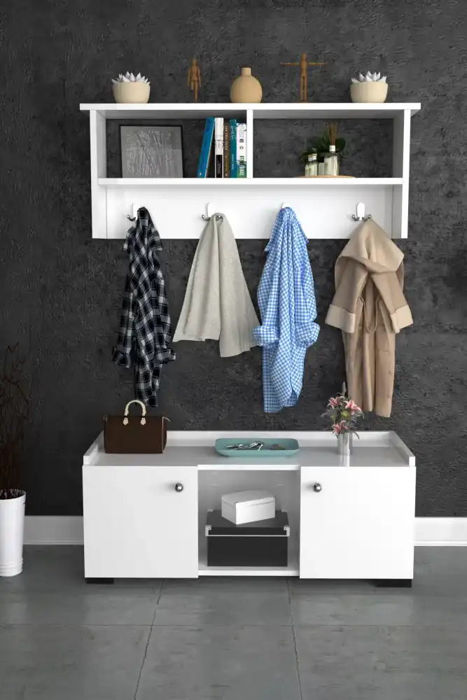 Asya Asılqanlı Dəhliz Dolabı - Ağ