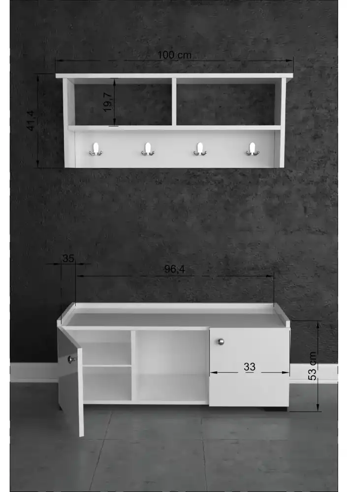 Berlin Abc Dəhliz Dolabı - Ağ