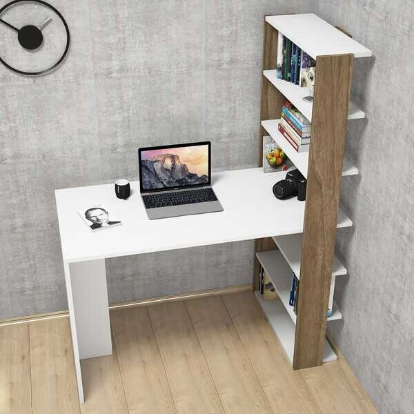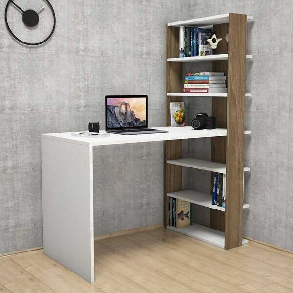 Extra Divar Rəfli Çalışma Masası və Kitab Rəfi Dəsti - Cəviz