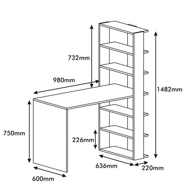 Extra Divar Rəfli Çalışma Masası və Kitab Rəfi Dəsti - Ağ