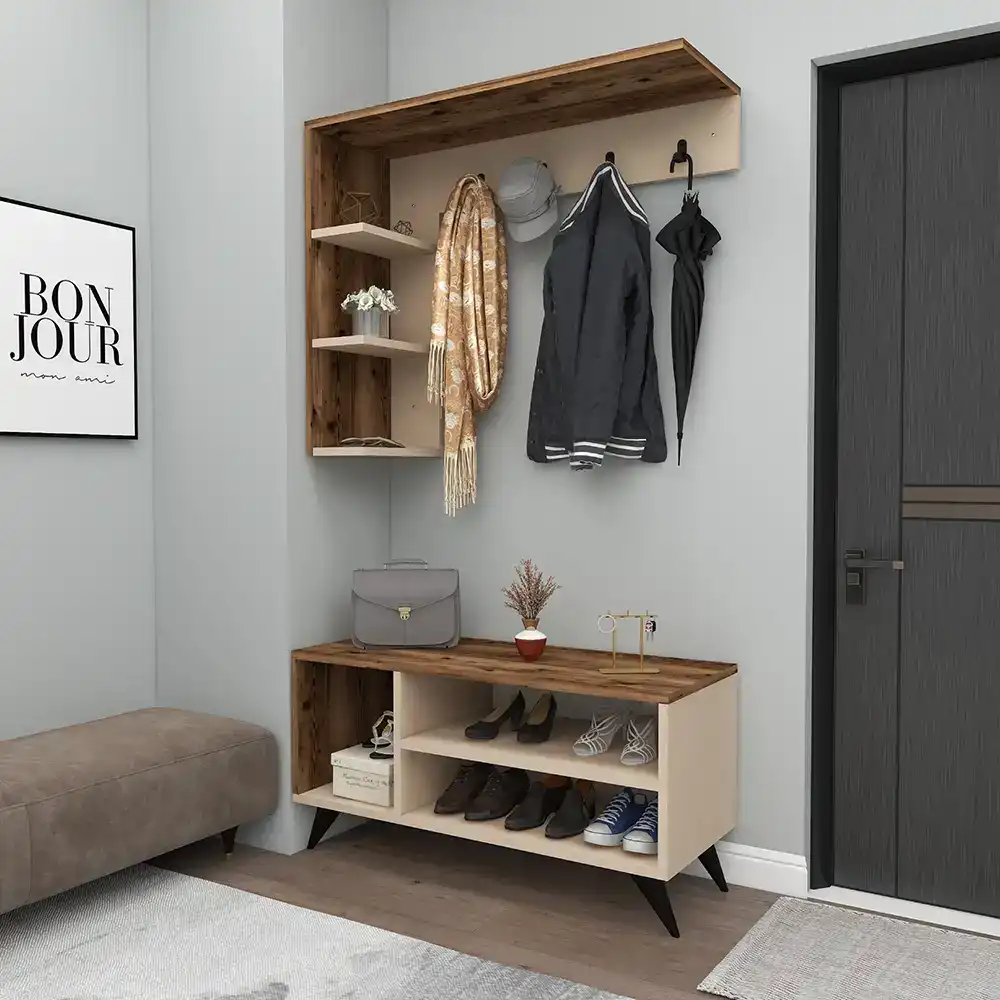 Berlin Abc Dəhliz Dolabı - Cəviz/Krem