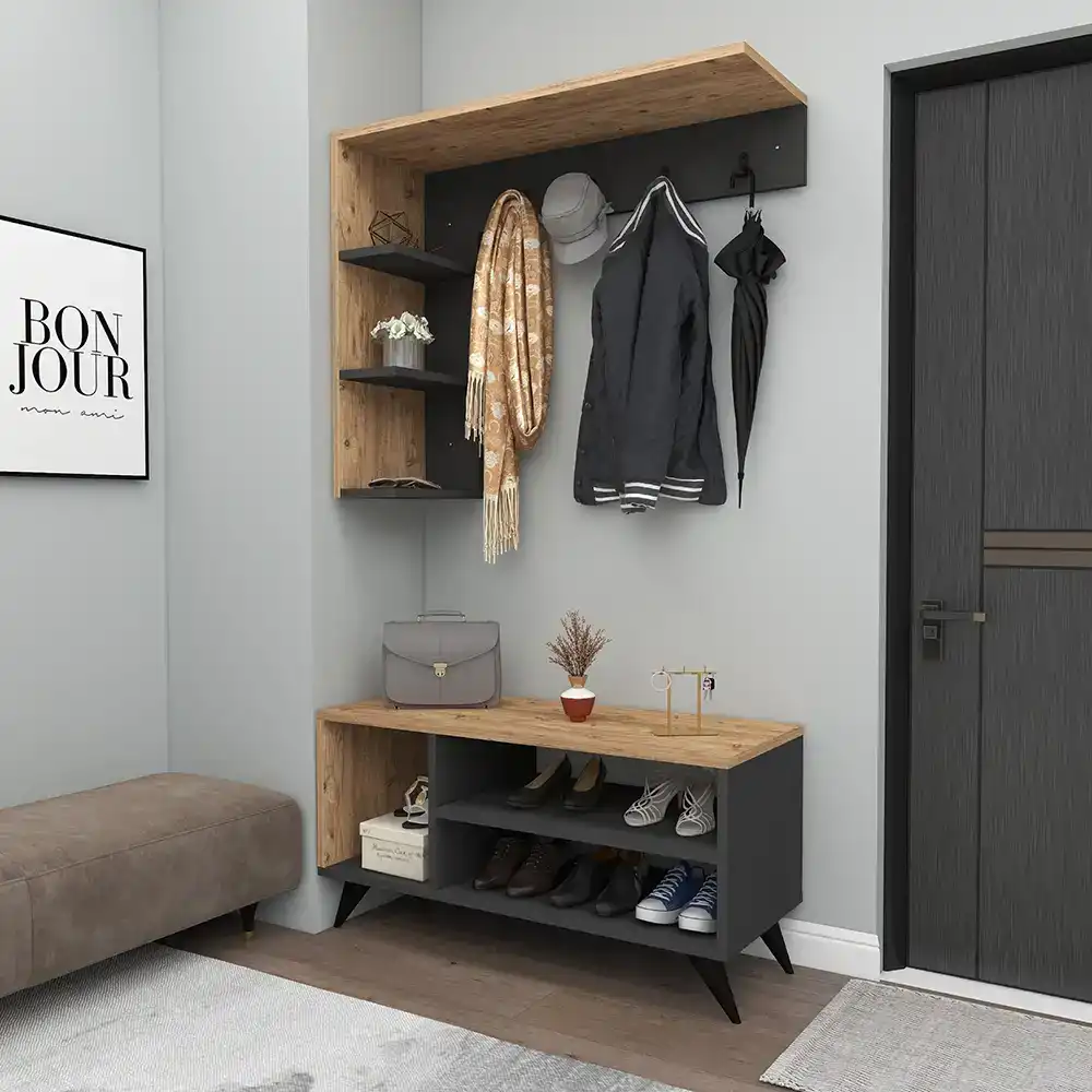 Viyana Da Dəhliz Dolabı - Cəviz/Antrasit