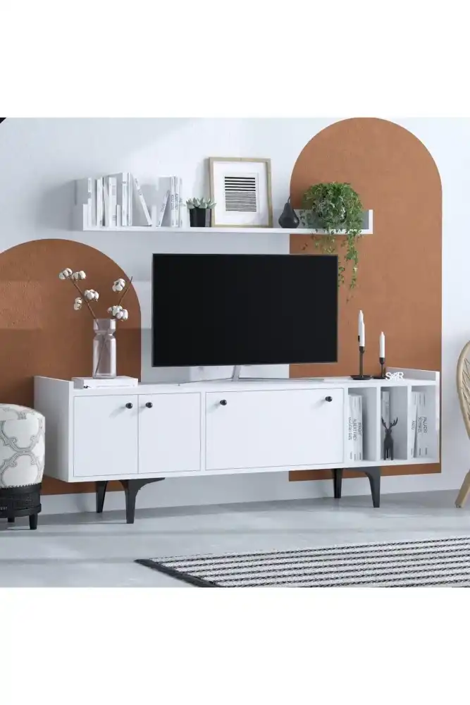 Cordelia Divar Rəfli Tv Stend - Ağ
