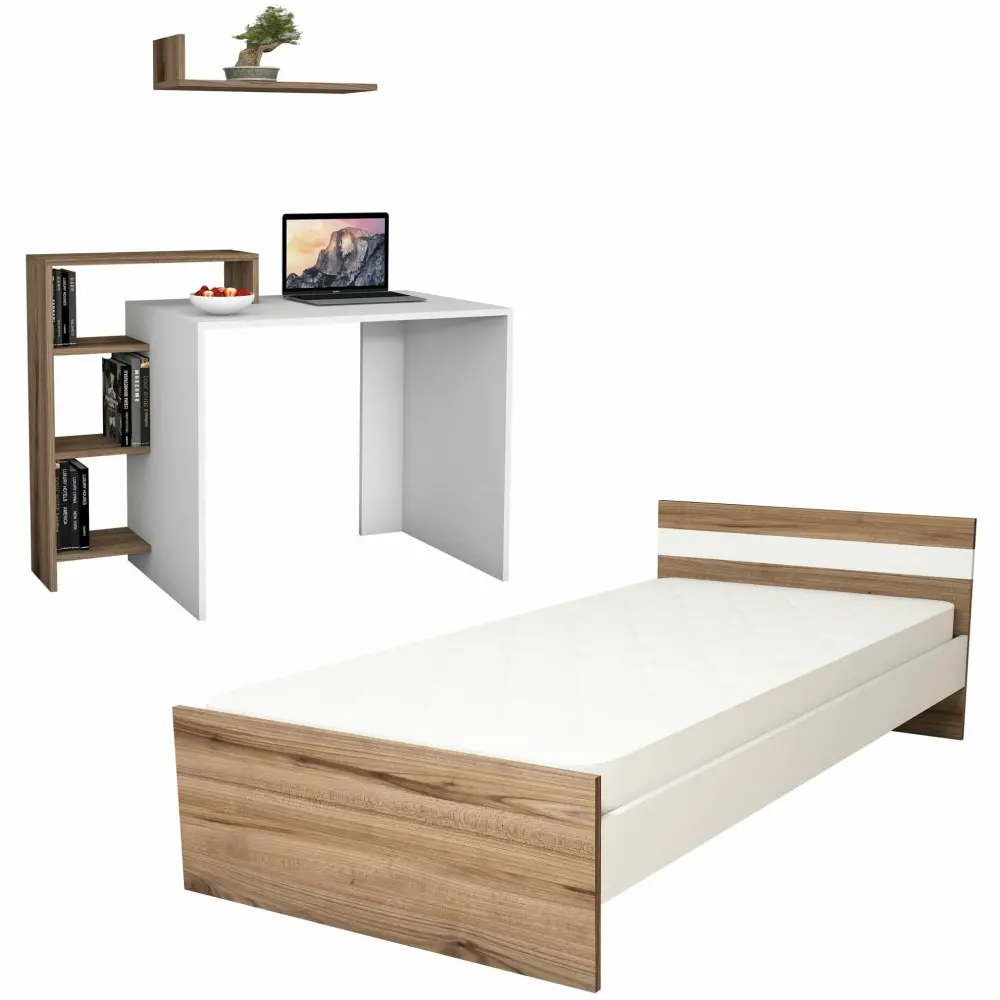 Elita Uşaq Otağı Mebel Dəsti + Çarpayı, Geyim Dolabı, Çalışma Masası, Kitab Rəfi - Ağ/Cəviz
