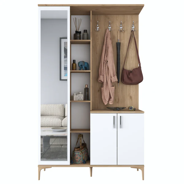 Viyana Da Dəhliz Dolabı - Cəviz/Ağ