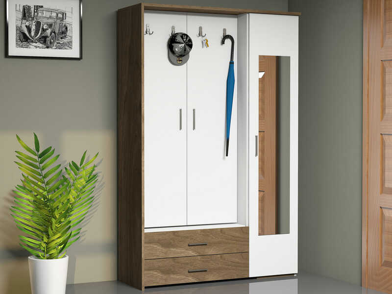 Viyana Da Dəhliz Dolabı - Cəviz/Ağ