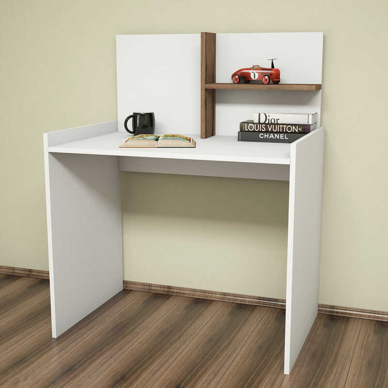 Extra Divar Rəfli Çalışma Masası və Kitab Rəfi Dəsti - Ağ