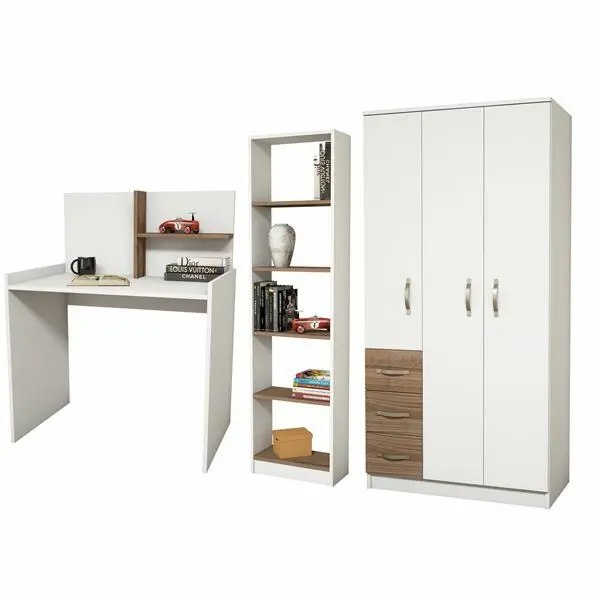 Elita Uşaq Otağı Mebel Dəsti + Geyim Dolabı, Çalışma Masası, Kitab Rəfi - Ağ/Cəviz