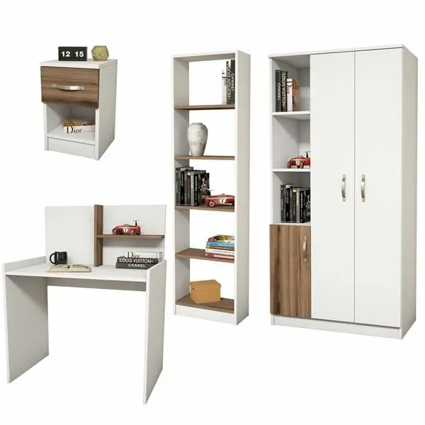 Elita Uşaq Otağı Mebel Dəsti + Geyim Dolabı, Tumba, Çalışma Masası, Kitab Rəfi - Ağ/Cəviz