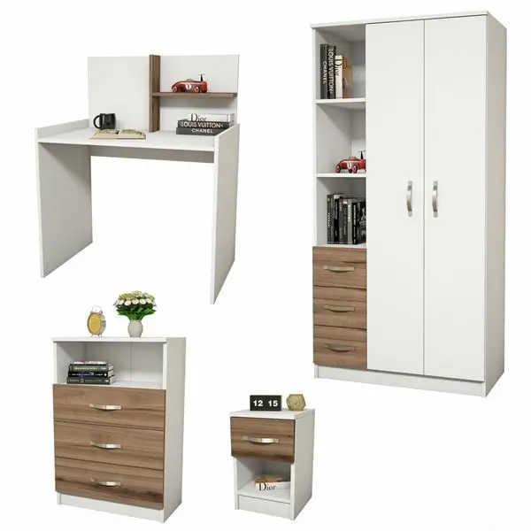 Elita Uşaq Otağı Mebel Dəsti + Geyim Dolabı, Tumba, Kamod, Çalışma Masası - Ağ/Cəviz