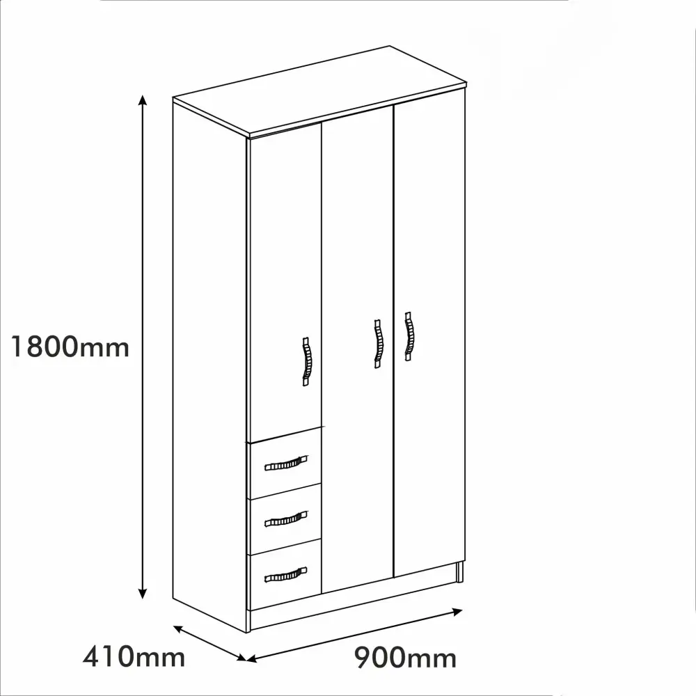 Geyim Dolabı - En: 90 cm, Hündürlük: 180 cm, Dərinlik: 41 cm