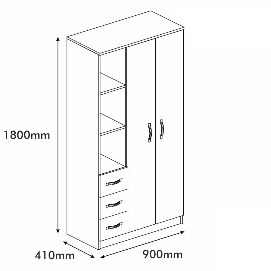 Callisto 3 Qapılı Geyim Dolabı - Ağ