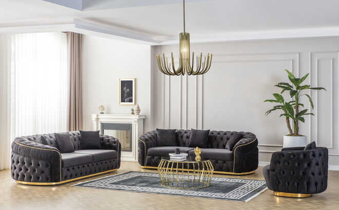 Elite Divan Dəsti 3+2+1 - Siyah Gold
