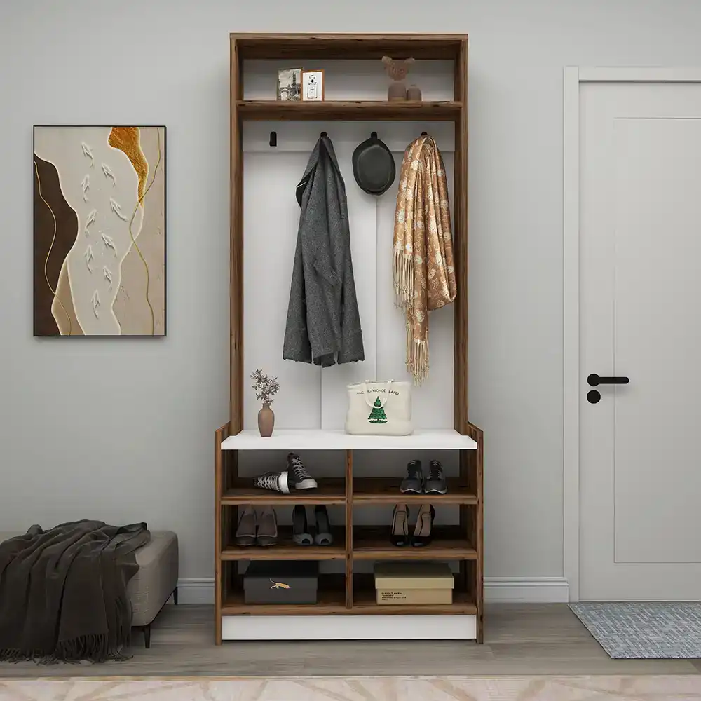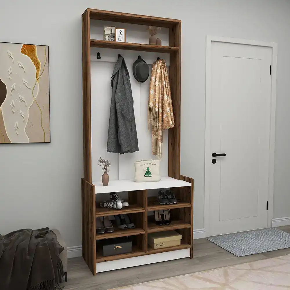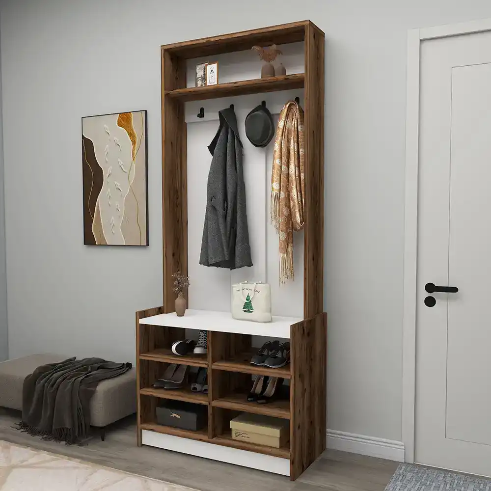 Viyana Da Dəhliz Dolabı - Cəviz/Ağ