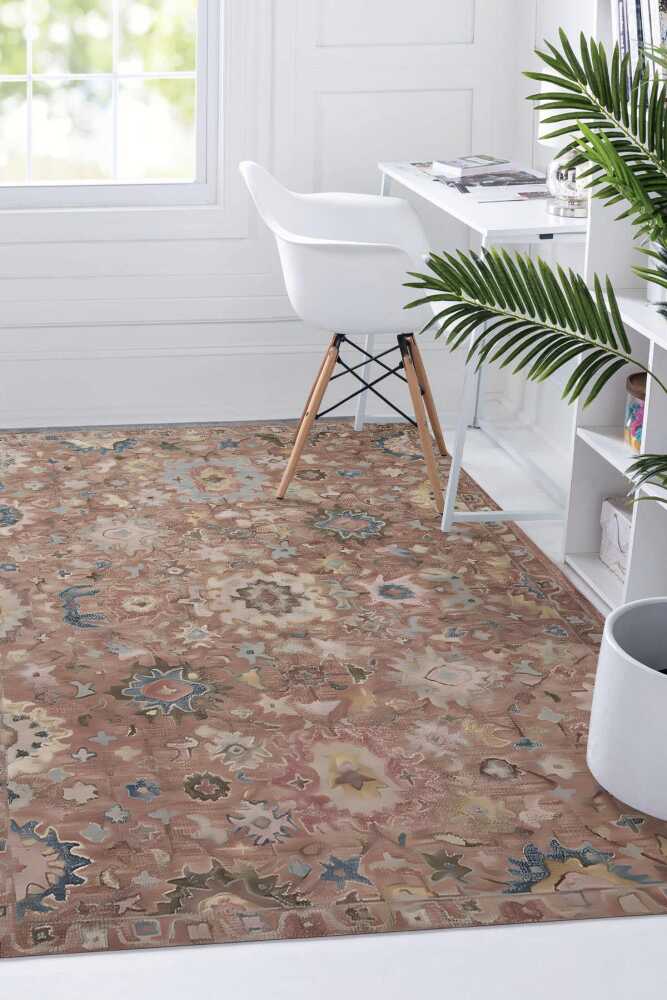 Esitme Turuncu Vintage Desen Dijital Baskılı Zenit Kilim