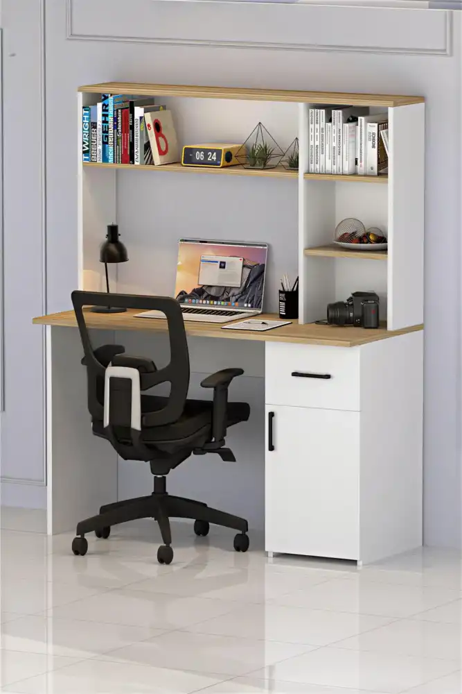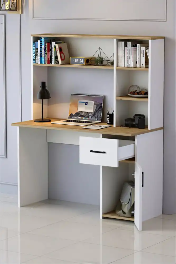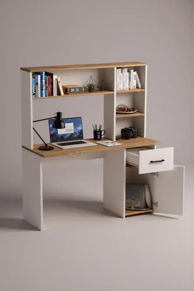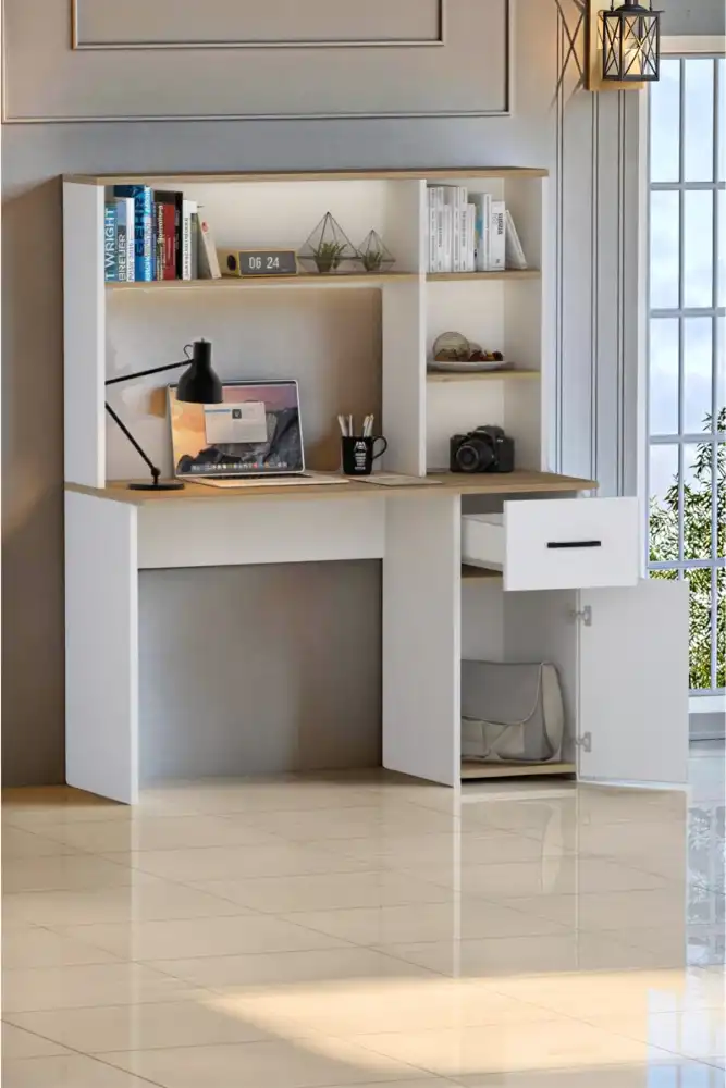 Extra Çalışma Masası və Kitab Rəfi Dəsti - Ağ