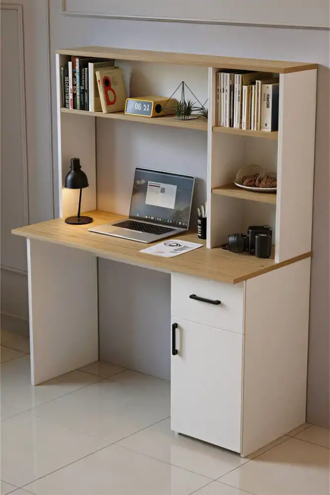 Extra Çalışma Masası və Kitab Rəfi Dəsti - Krem
