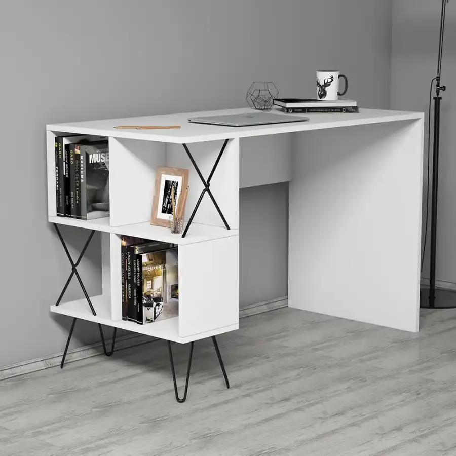 Extra Divar Rəfli Çalışma Masası və Kitab Rəfi Dəsti - Ağ