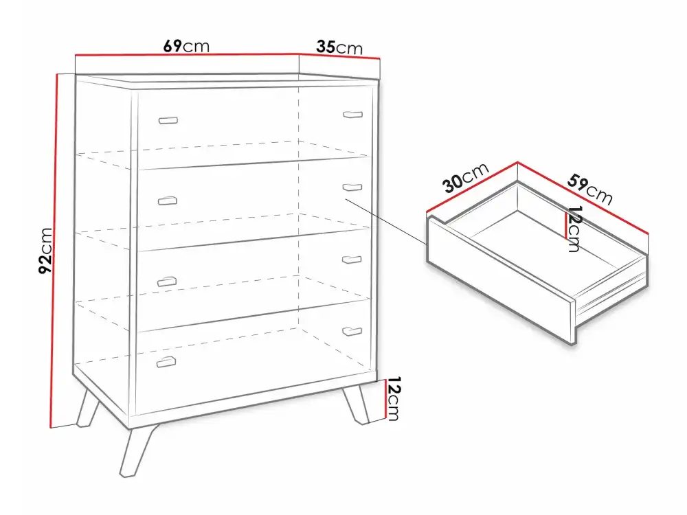 En: 69 cm, Hündürlük: 92 cm, Dərinlik: 35 cm