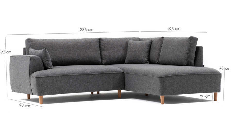 Felix Extra Soft Künc Divan Koyu Gri Sağ