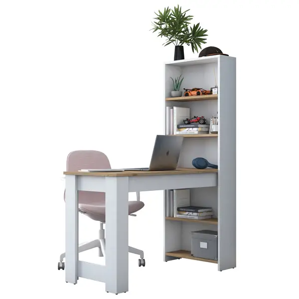 Extra Divar Rəfli Çalışma Masası və Kitab Rəfi Dəsti - Ağ