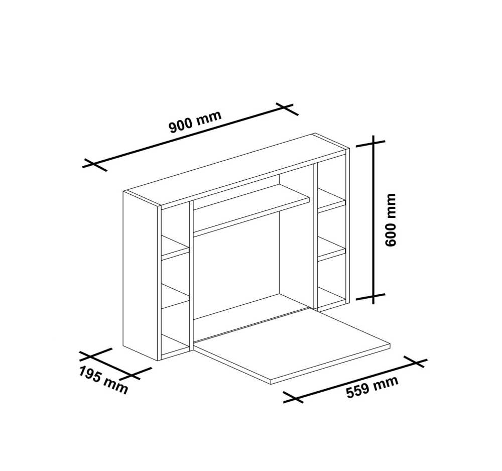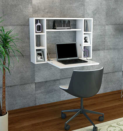 Extra Divar Rəfli Çalışma Masası və Kitab Rəfi Dəsti - Ağ