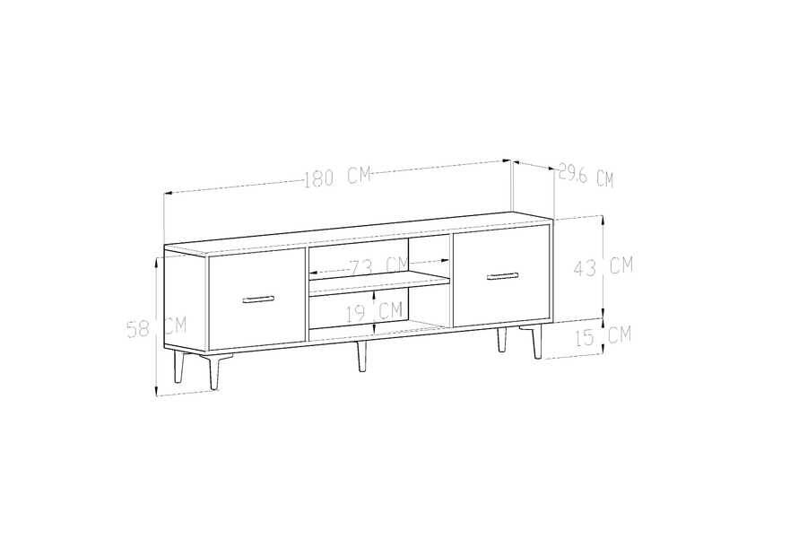 En:180 cm, Dərinlik:29,6 cm, Hündürlük:58 cm