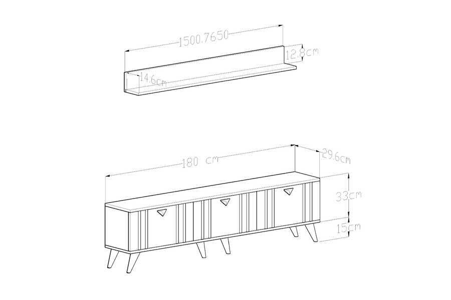 En:180 cm, Dərinlik:29,6 cm, Hündürlük:48 cm