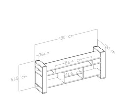 En:150 cm, Dərinlik:33,2 cm, Hündürlük:61,8 cm