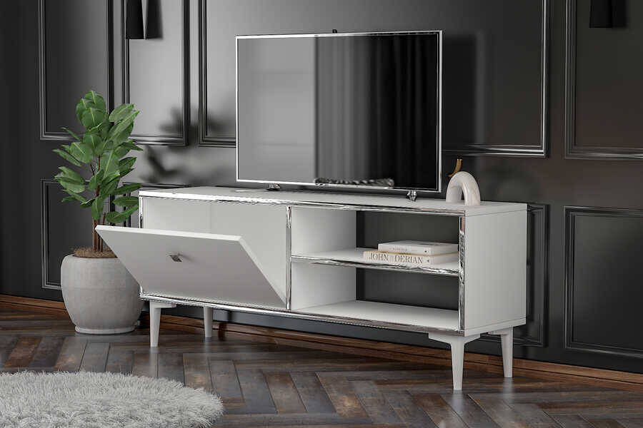 Lisa Tv Stend - Ağ/Gümüşü Bant