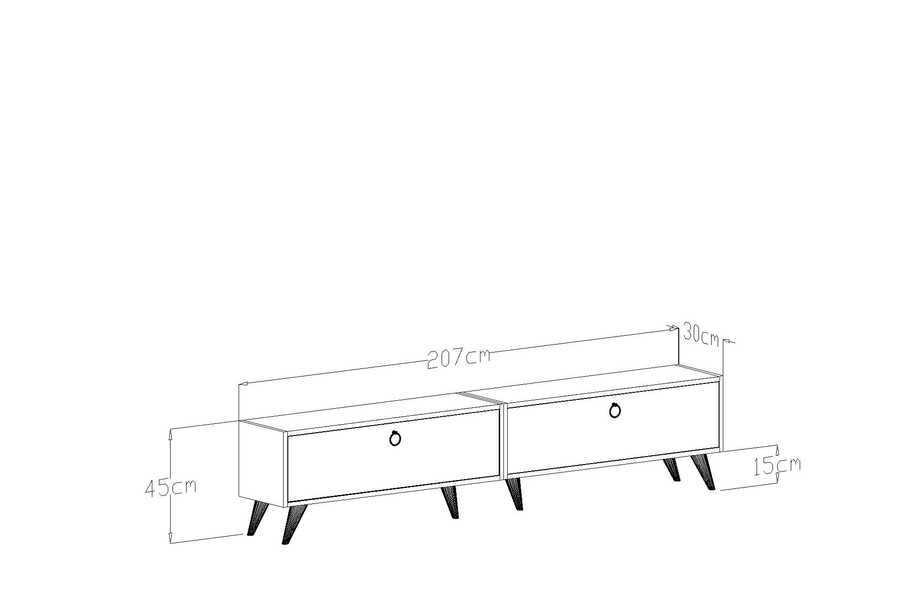 En:207 cm, Dərinlik:30 cm, Hündürlük:45 cm