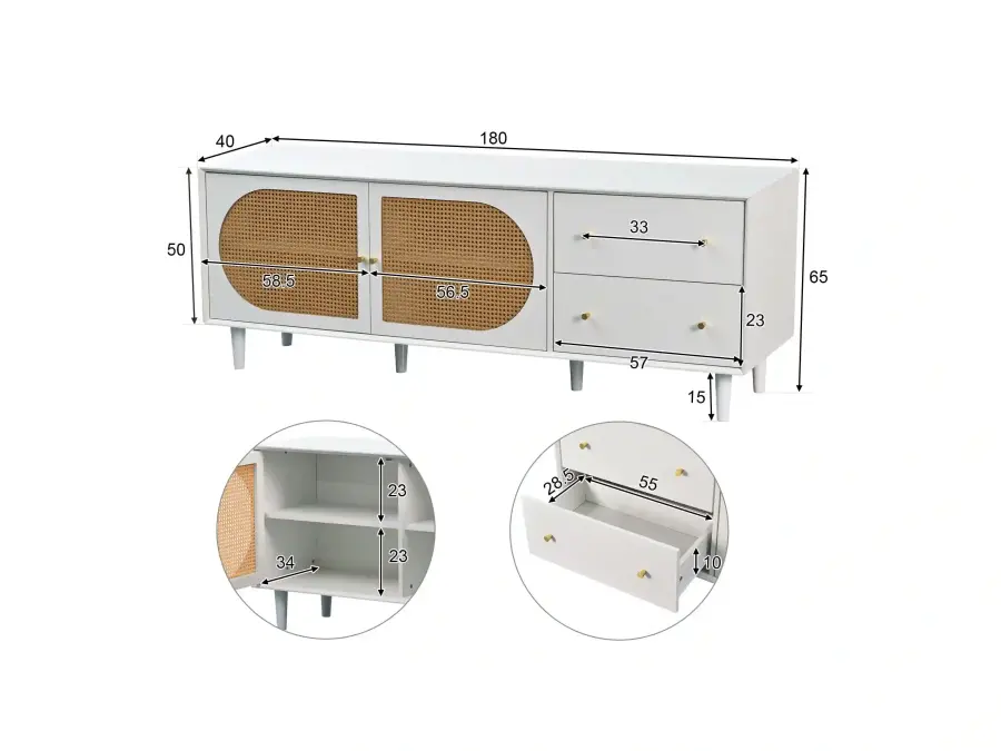 En: 180 cm, Hündürlük: 65 cm, Dərinlik: 40 cm