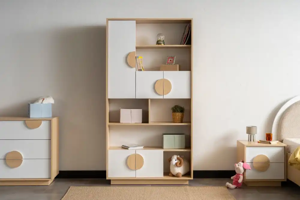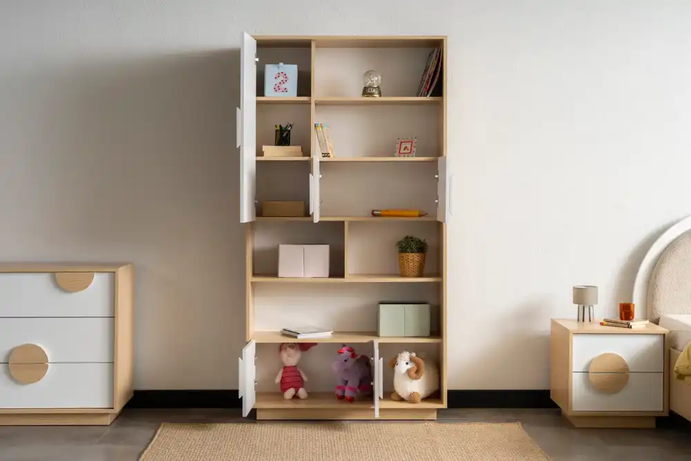 Elita Uşaq Otağı Mebel Dəsti + Çarpayı, Geyim Dolabı, Tumba, Kitab Rəfi - Ağ/Cəviz