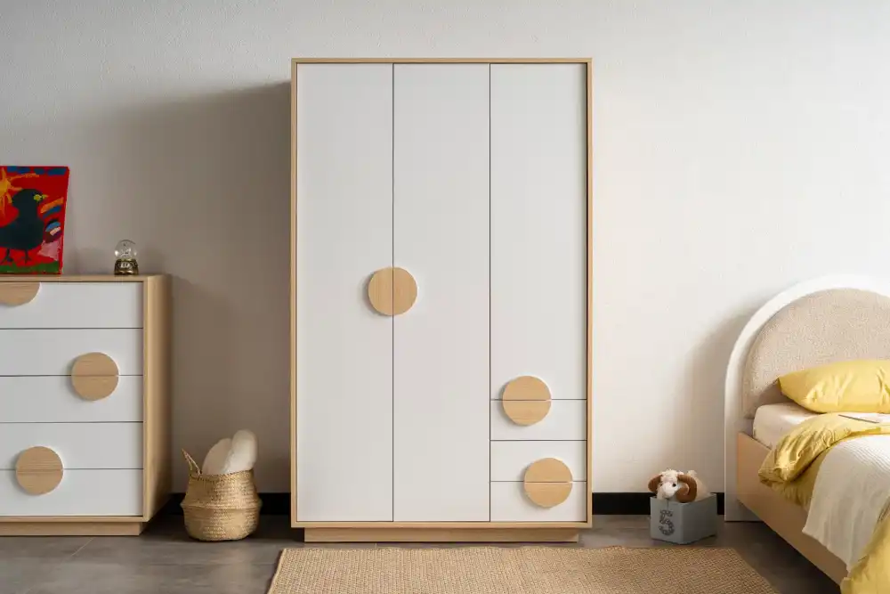 Serta Uşaq Otağı Mebel Dəsti + Çarpayı, Dolab, Çalışma masası, Tumba - Cəviz/Ağ
