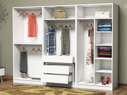 Trio Həsirli 4 Qapılı Dolab - Ağ