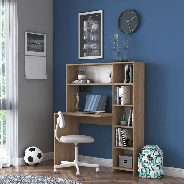 Extra Divar Rəfli Çalışma Masası və Kitab Rəfi Dəsti - Cəviz
