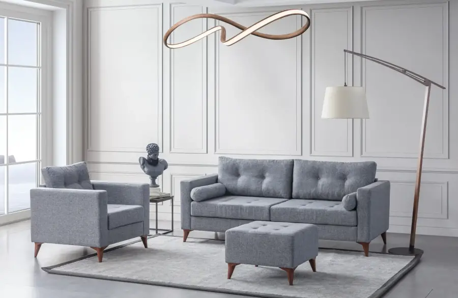 Kraft Pufikli Divan Dəsti 3+1 - Boz