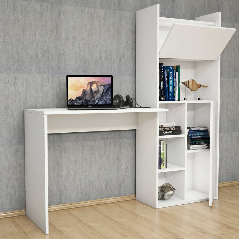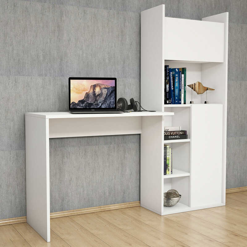 Extra Divar Rəfli Çalışma Masası və Kitab Rəfi Dəsti - Ağ