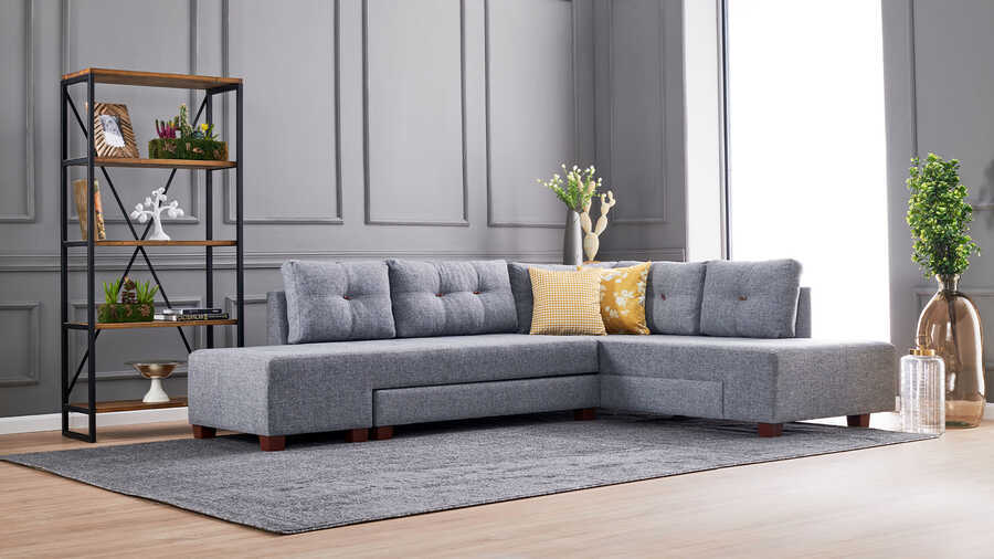 Manama Stil Yataqlı Açılan Künc Divan Gri Sağ