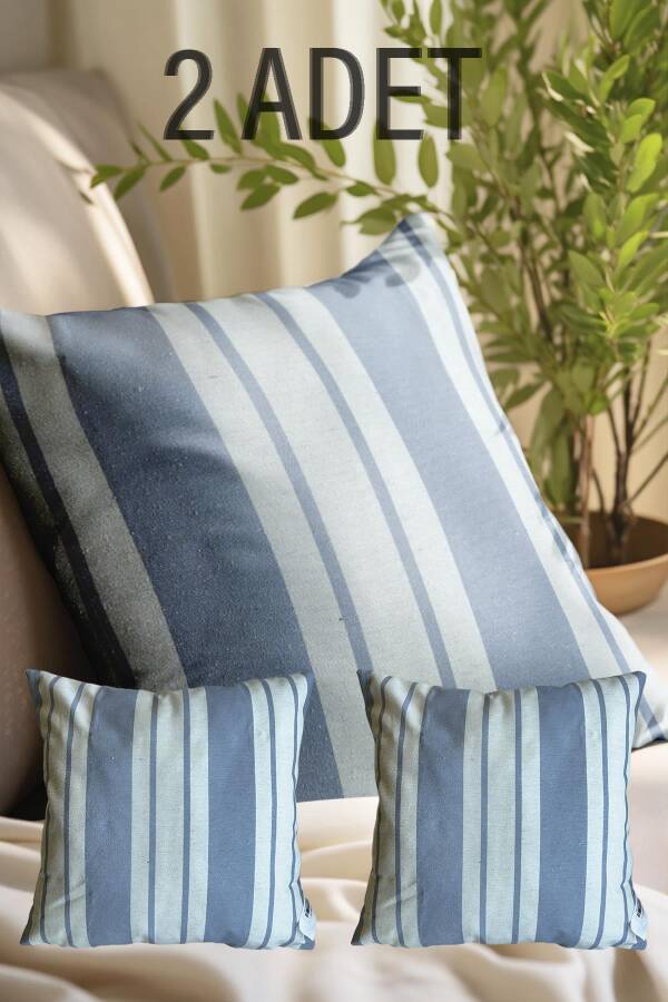 Mavi Beyaz Şerit Çizgili 2'li Kırlent Kılıfı
