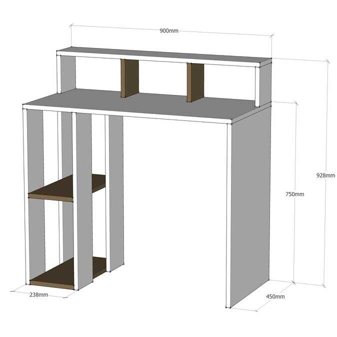 Extra Divar Rəfli Çalışma Masası və Kitab Rəfi Dəsti - Cəviz