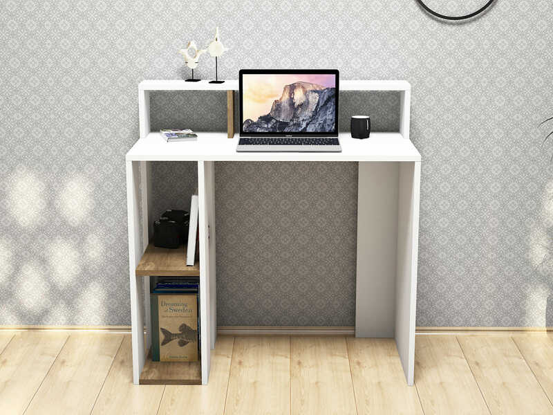 Extra Divar Rəfli Çalışma Masası və Kitab Rəfi Dəsti - Ağ