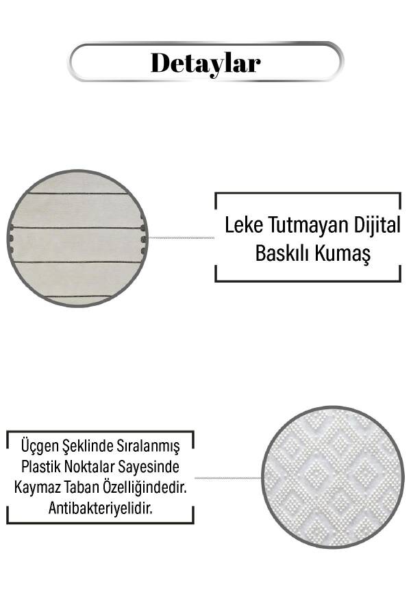 %100 yerli olarak Markaev üretim tesislerinde üretilmiştir. Tüm ürünler 2 yıl üretici garantisi kapsamındadır. En son teknoloji tezgah ve makinelerde üretilmiş ve usta ellerde işçiliği yapılmıştır. Ürünler, özenle ve hasar görmeyecek şekilde paketlenmektedir. Kaymaz Taban; Halının zemini ithal en üst kalite kaymaz keçe dot tabandan üretilmektedir. Yerde kayma, toplanma yapmaz. Olası ev kazalarını önler. Kullanılan en üst kalite malzemeler sayesinde kesinlikle zamanla parçalanma, dökülme yapmaz. Tay Tüyü Kumaş; Yumuşak dokusu sayesinde rahatlık hissi verir. Antialerjik hav çıkarmayan dokusu sayesinde çocuk odalarında rahatlıkla kullanılabilir. Antistres özelliği ile ayak altı konforunuzu en üst seviyeye taşır. Sıcak bir oda atmosferi sağlar. Kolay Temizleme; Temizliği pratik ve leke tutmayan özelliktedir. Kolay silinebilir. Çamaşır makinesinde sıkma programı olmadan 30 derecede yıkanabilir. Yıkandıktan sonra iyice kurutularak sonra ertesi gün tekrar kullanılmaya hazır hale gelir. Lekeyi yukarıda tutan özel kumaşı sayesinde tüm lekeler halı şampuanı ve bez yardımıyla kolayca silinebilir.