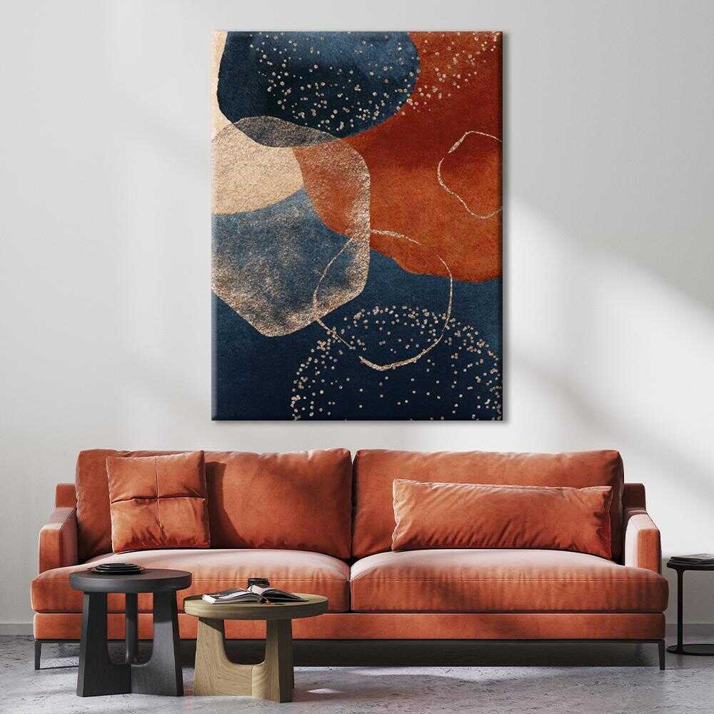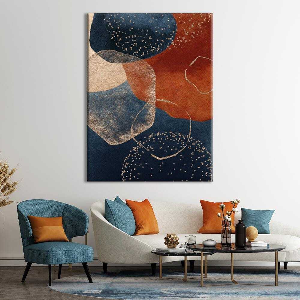 Modern Orange Blue Abstract 3'lü Set Kətan Tablo TB2020