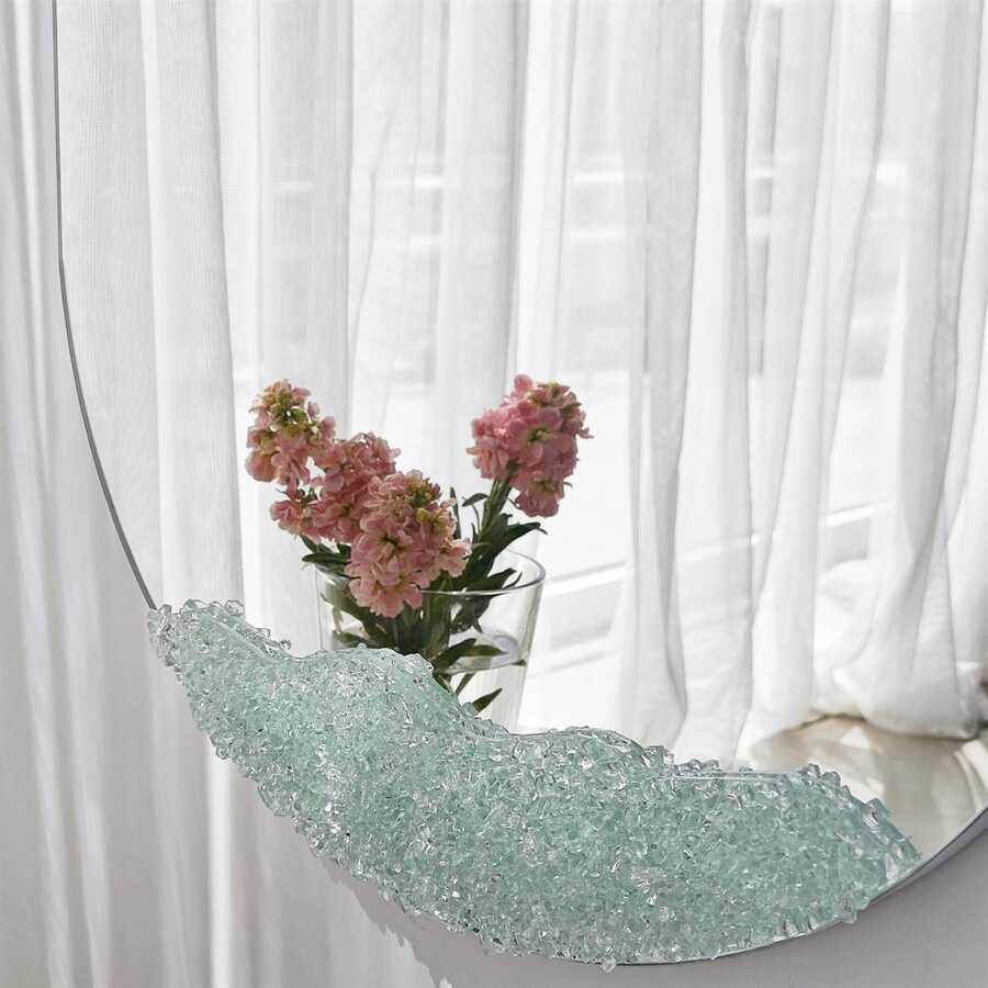 •Aynanın üzerindeki dekoratif kısımlar, füzyon cam tekniği kullanılarak, el işçiliğiyle yapılmıştır. Keskin olmayan küçük cam parçaları görsel bir ışık şöleni sunuyor.