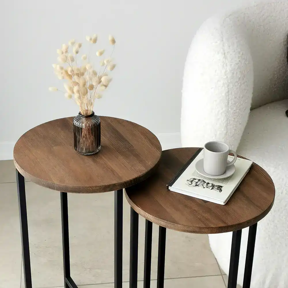 Serenity 2li Sehpa -Ceviz & Füme Cam